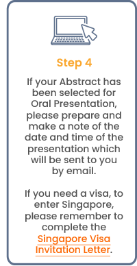 Presenters of oral presentations of accepted Abstracts as Free Papers will be receive a payment of USD800 to help defray the cost of travel and accommodation here in Singapore and a registration fee refund after the presentation.